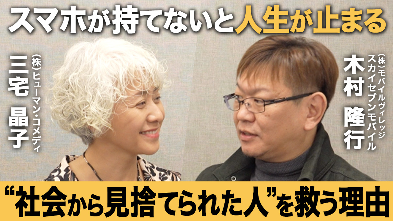 世の中には、一生懸命働いたのに、過去の失敗や制度の壁に阻まれてスタートラインにさえ立てない人たちがいます。行政の支援だけではどうしても届かない、そんな「すき間」に手を伸ばしている二人の経営者がいます。一人は、携帯電話の契約に踏み出せない人に再起の機会をつくる木村勝宏さん。もう一人は、大手キャリアで培った通信の知見を活かし、携帯電話を起点に就労の可能性を広げる三谷晶子さん。「過去ではなく、未来を信じたい」。そう語る二人に、それぞれの原点と、今見えている未来、これからの希望について語り合っていただきました。
